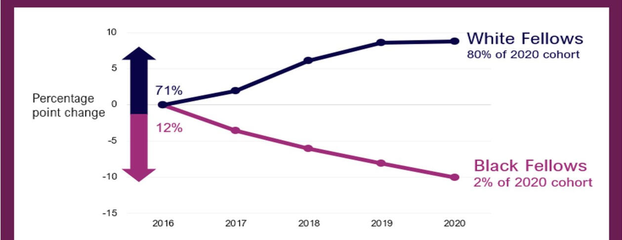 Black Fellows have been INCREASINGLY under-represented in the program since 2017, after the implementation of the new assessment process.